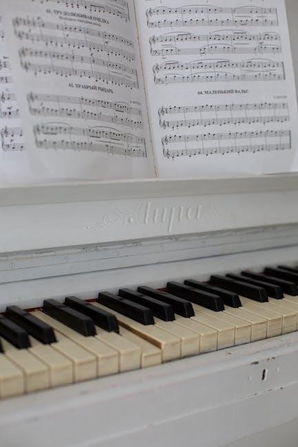Pachelbel’s Canon in D is primarily written in the key of D major‚ indicated by two sharps in its key signature – F# and C#. This means all F and C notes throughout the piece are played as F# and C#‚ respectively‚ unless otherwise altered by accidentals. The time signature is commonly 3/4‚ signifying three quarter notes per measure‚ creating the piece’s characteristic flowing rhythm.