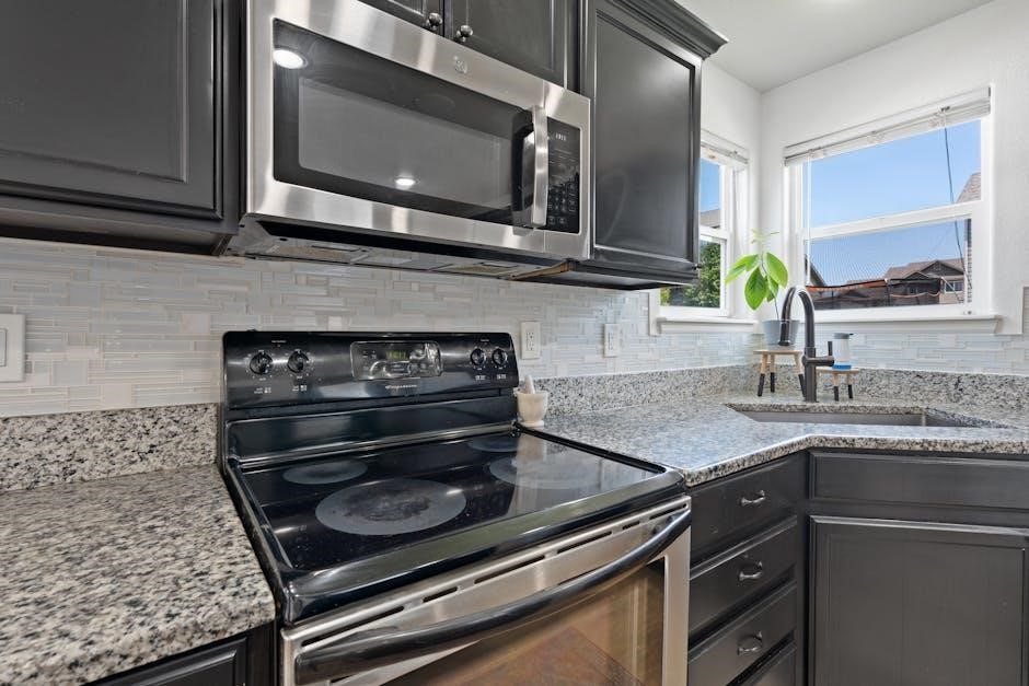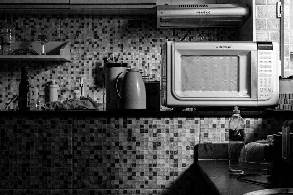 Familiarizing yourself with each button’s function is crucial for effective use. The display panel indicates cooking time, power level, and operational status. Refer to the PDF manual (available online) for a detailed diagram and explanation of each control. Understanding the interplay between these controls allows for precise cooking and avoids accidental operation. Remember to consult the manual for specific instructions related to setting the clock and utilizing advanced features.